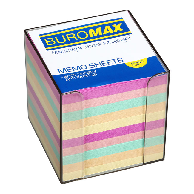 Блок для записів кольоровий, 90*90*90, пластиковий бокс, Buromax