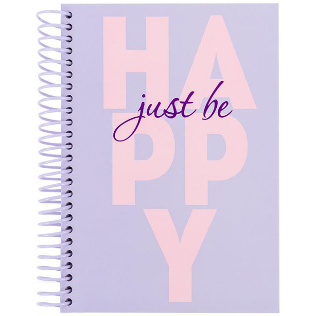 Зошит на спіралі А5 120 аркушів клітка, тверда обкладинка, "Happy"