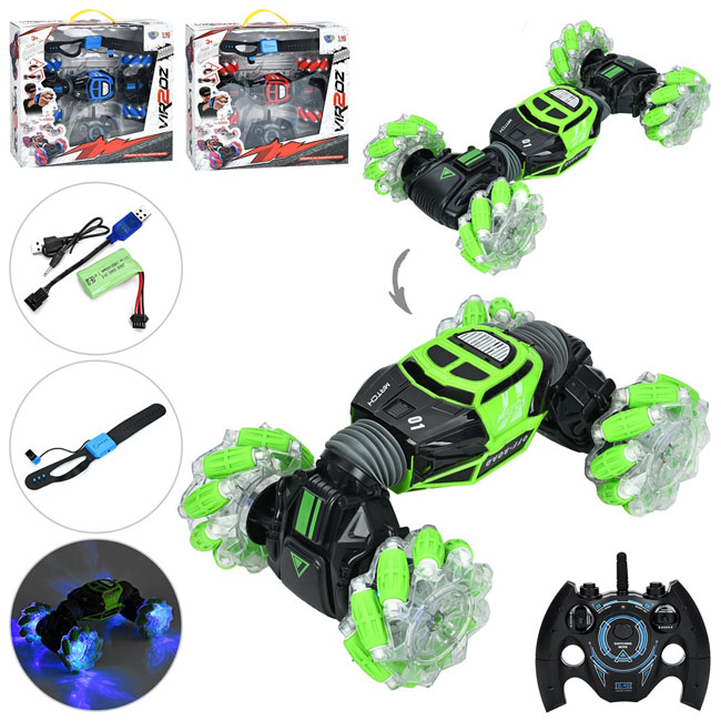 р/к (пульт 2 шт, 1-одяг.на руку), акум, трюкова, 1:16, 33см, звук, світло, USB зарядне, 3 кольори, у кор-ці