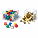 Зручна упаковка: Кнопки постачаються в пластикових боксах із кришкою, що забезпечує безпечне зберігання та лад у шухляді столу.