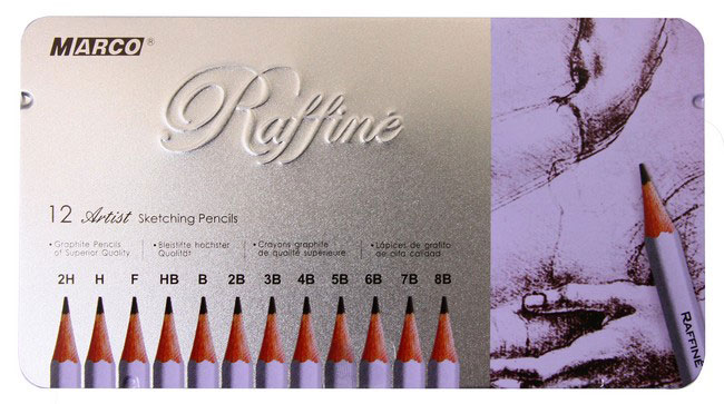 Набір олівців чорнографітних 12 штук 2Н-8В в металевому пеналі, Marco 7000-12TN