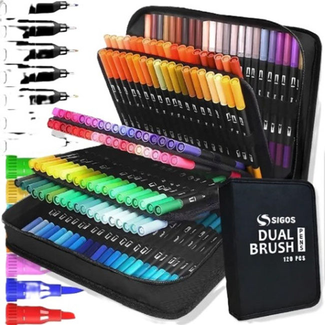Набір скетч маркерів 120 кольорів акрил, лінер+пензлик