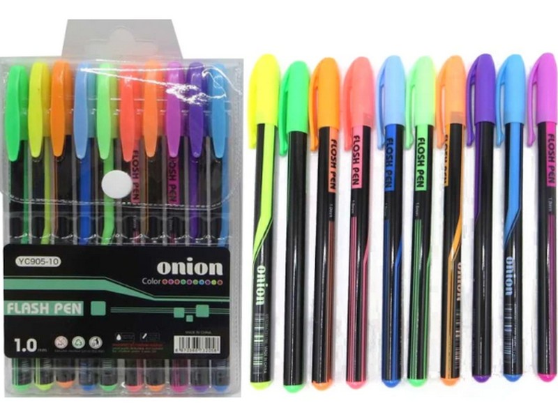Набір ручок гелевих 10 кольорів із блиском та запахом "Смайлик/Фрукти"