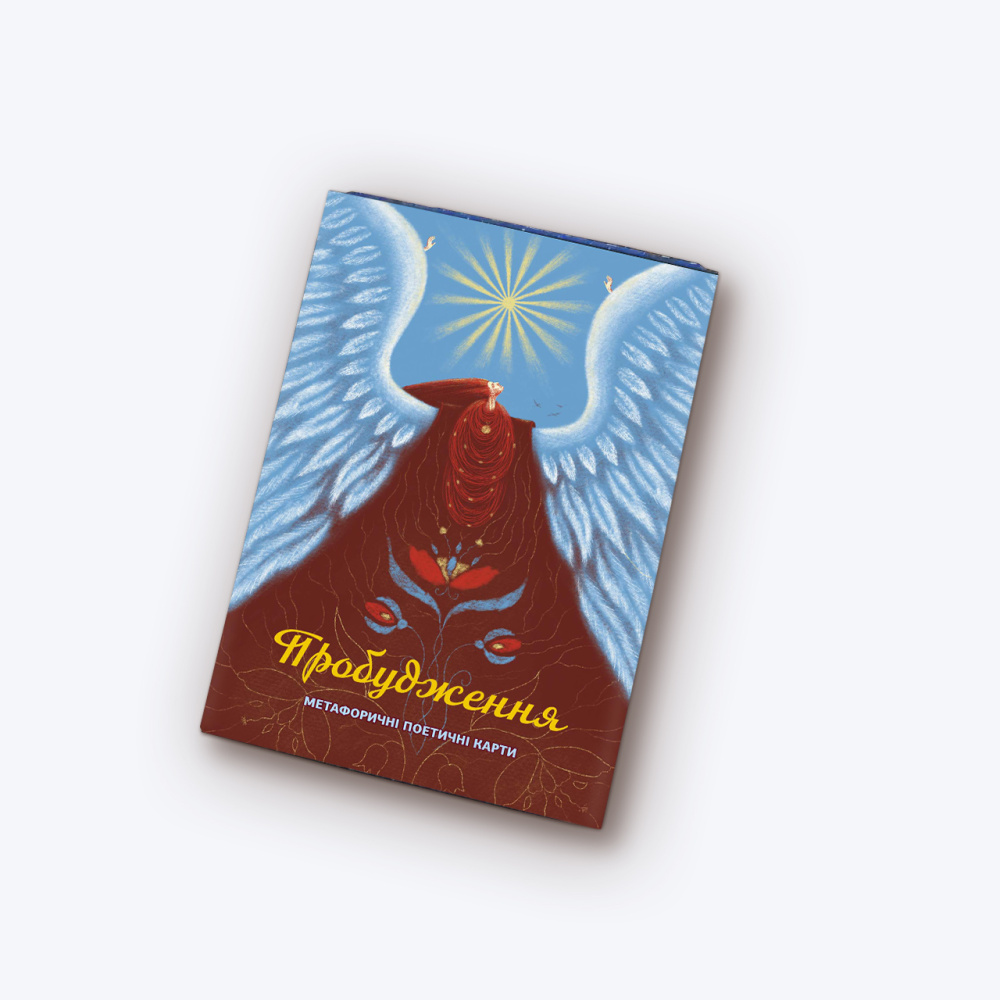 Унікальна поетична колода метафоричних етнокарт “Пробудження” на картини художниці Олі Гайдамаки відкриє глибину жіночої душі, пробудить її силу та красу. На звороті до кожної карти надрукований вірш-підказка талановитих поеток.