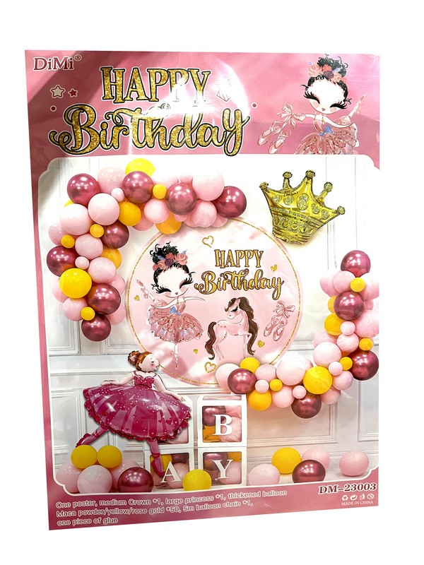 Набір повітряних кульок для фотозони + банер "Happy Birthday" Балерина