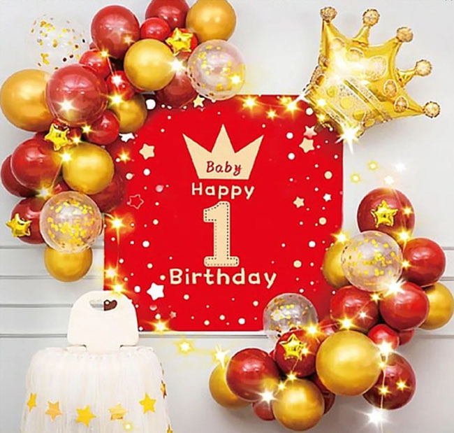 Набір декора до дня народження, дизайн золотий з червоним (банер, кульки)
